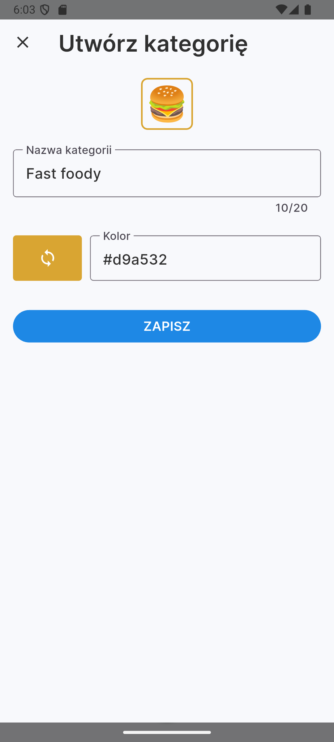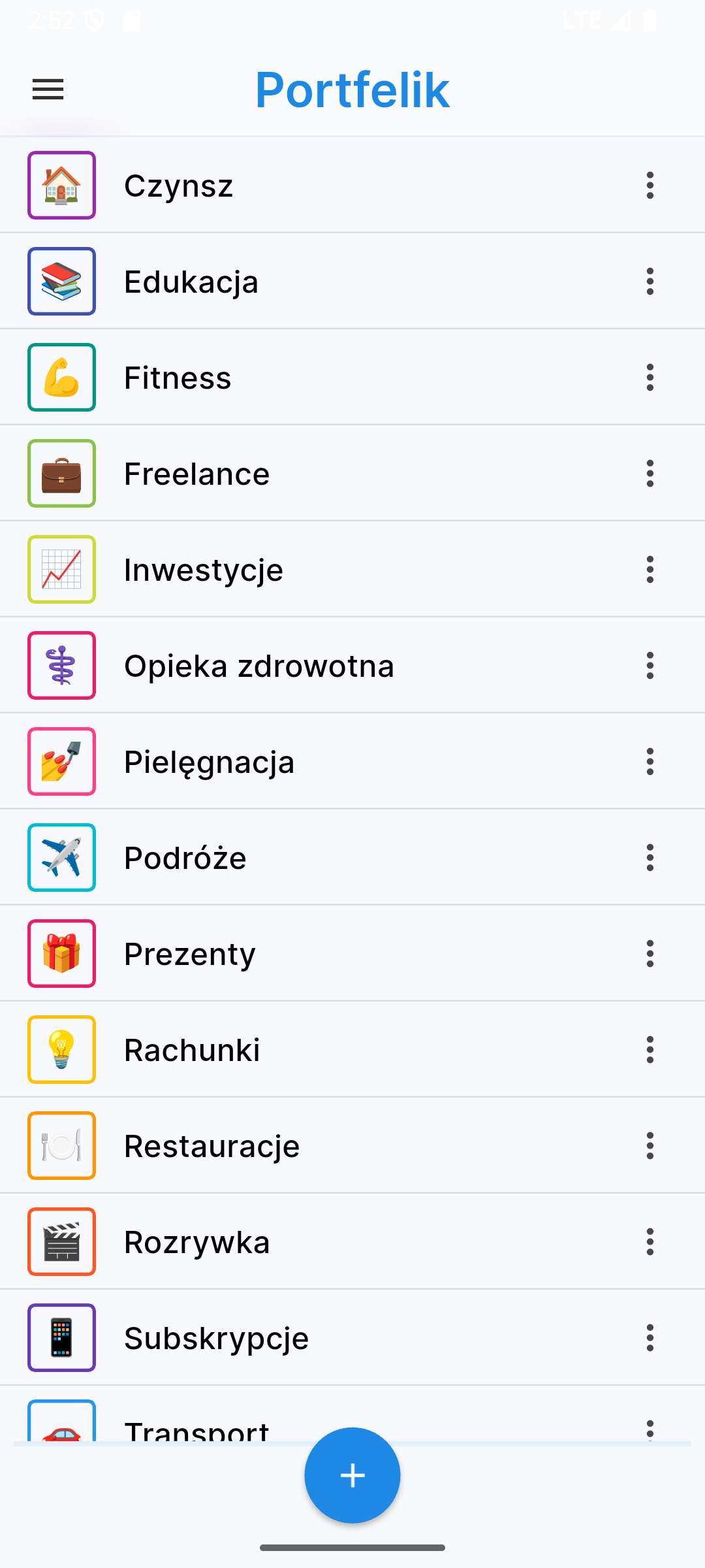 Zarządzaj swoimi kategoriami wydatków bezpośrednio z telefonu. Możesz dodawać własne kategorie, przypisywać im emotki oraz kolory.