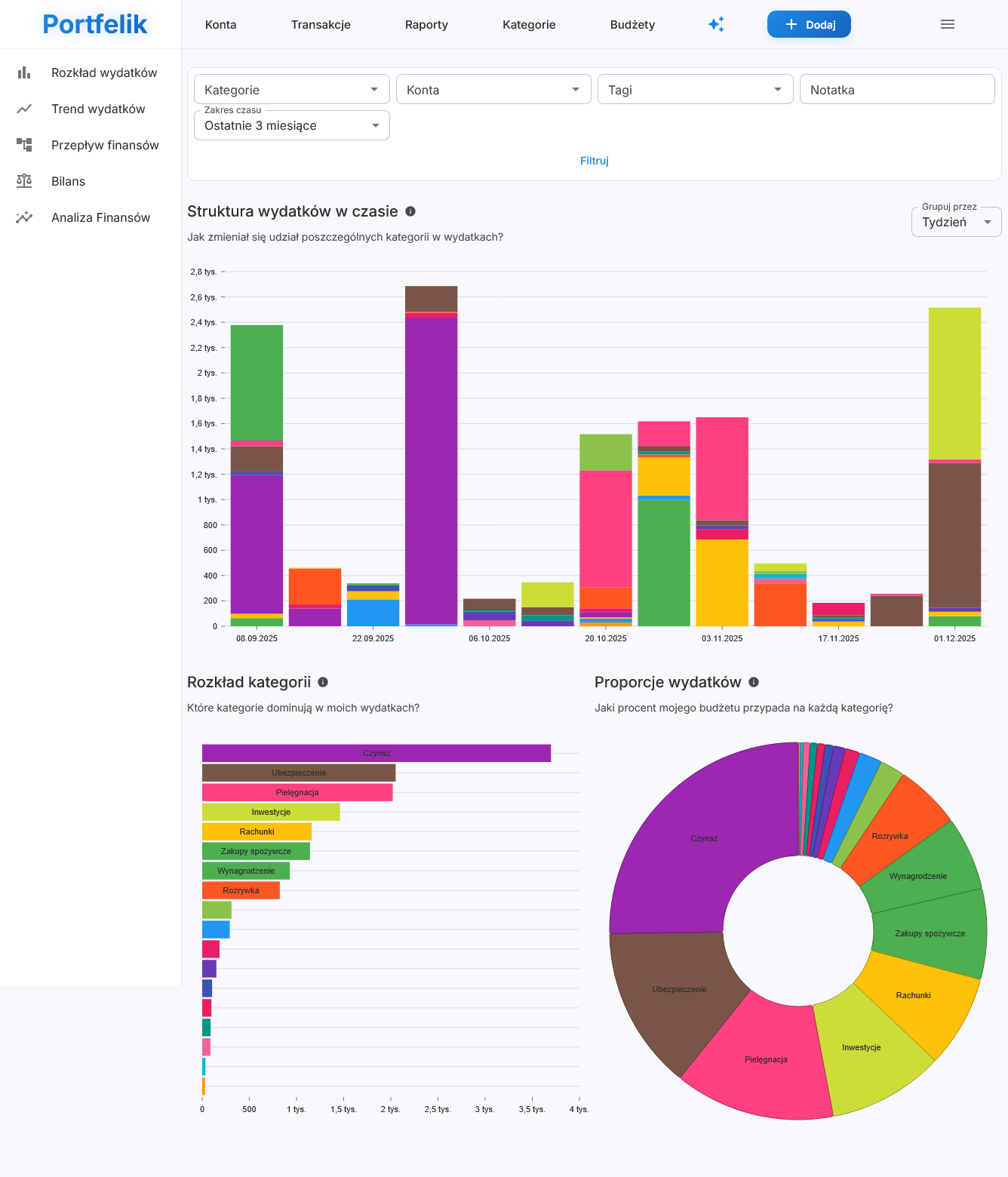 Wizualizuj swoje wzorce wydatków dzięki pięknym, intuicyjnym wykresom, które pomogą Ci zrozumieć, na co idą Twoje pieniądze.